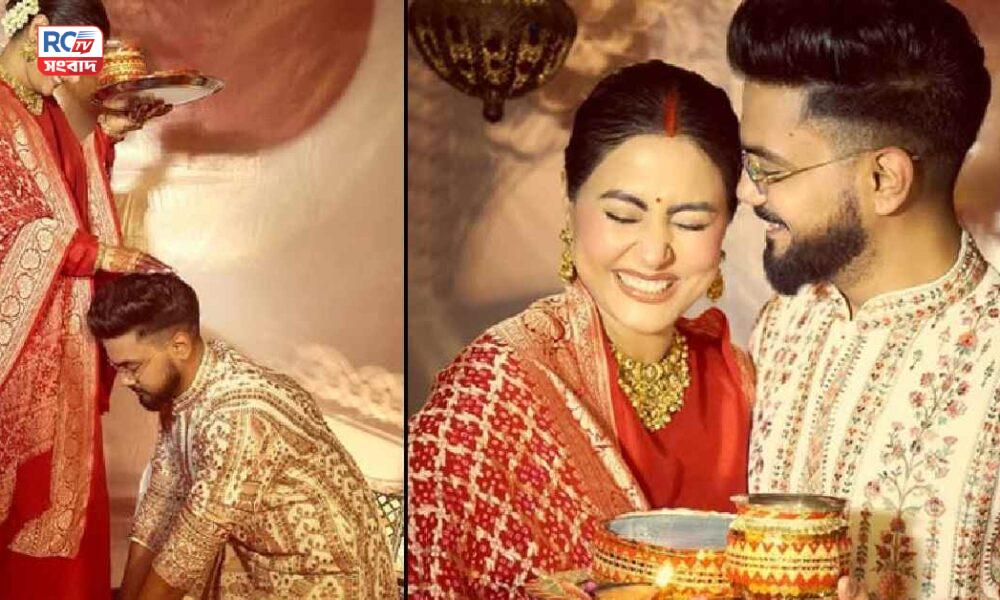 ডিজিটাল ডেস্কঃ লাল চুড়িদার (Churidar), সিঁথিভর্তি সিঁদুর (Vermilion)। বিয়ের (Marriage) বয়স মাত্র তিন মাস। তবু প্রথম করবা চৌথে (Karwa Chauth) হিনা খান যেন হয়ে উঠলেন প্রকৃত...