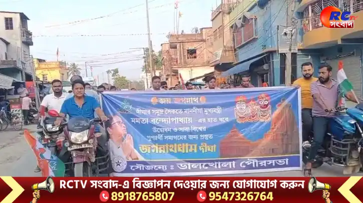 ডিজিটাল ডেস্কঃ দিঘায় নবনির্মিত জগন্নাথ মন্দিরের শুভ উদ্বোধন উপলক্ষে রাজ্যজুড়ে যে ধর্মীয় আবেগ ও সাংস্কৃতিক উৎসবের আবহ তৈরি হয়েছে, তারই অংশ হিসেবে মঙ্গলবার ডালখোলা শহরে আয়োজিত হল এক বিশাল বাইক র্যালি। স্থানীয় পৌরসভার উদ্যোগে আয়োজিত এই র্যালির মাধ্যমে মন্দির উদ্বোধনের বার্তা পৌঁছে দেওয়া হল সাধারণ মানুষের মধ্যে।
