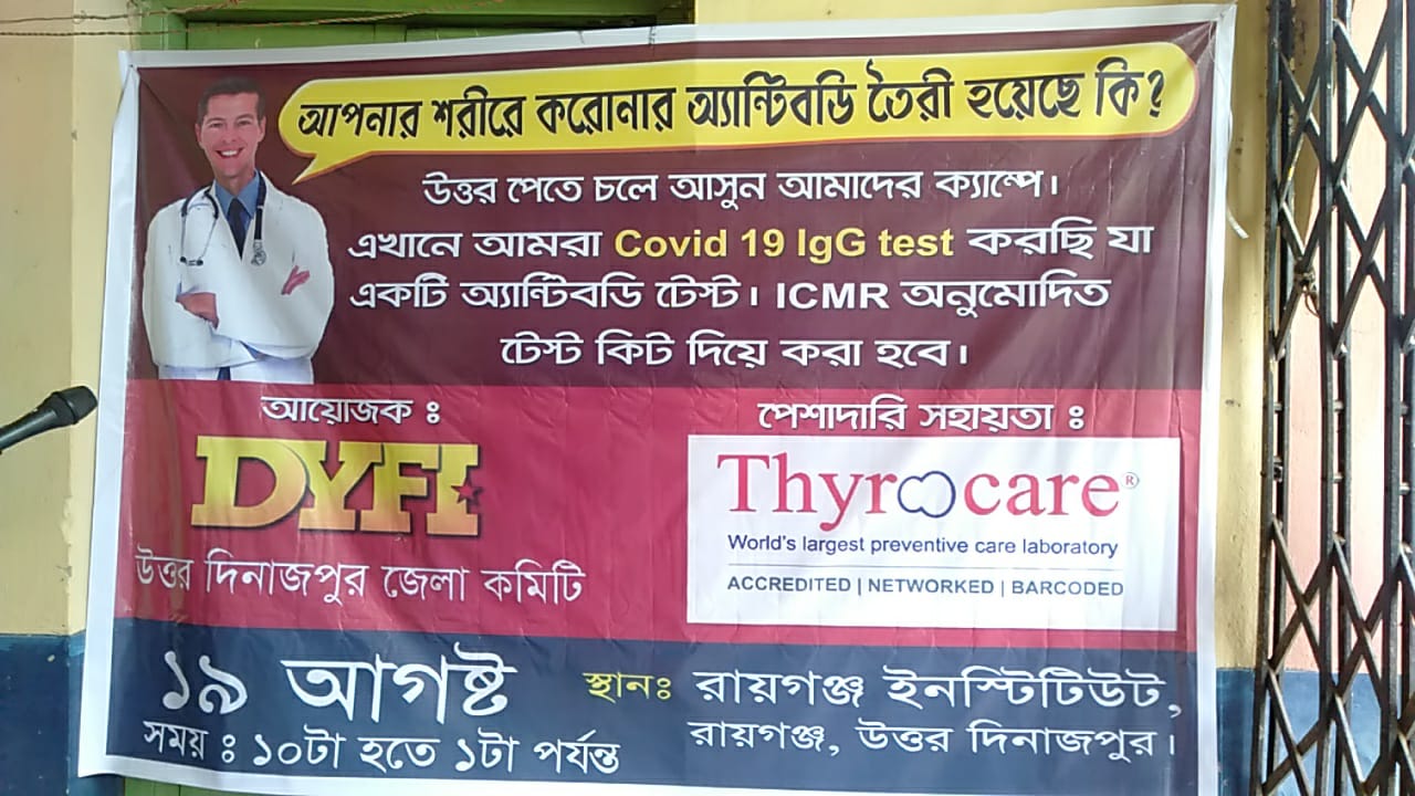 নিউজ ডেস্ক, রায়গঞ্জ : করোনা ভাইরাস সংক্রমন প্রতিরোধে শরীরে প্রয়োজনীয় অ্যান্টিবডি তৈরী হয়েছে কিনা, তা নির্ণয় করতে বিশেষ শিবির অনুষ্ঠিত হলো রায়গঞ্জে। বুধবার ডিওয়াইএফআই উত্তর দিনাজপুর...