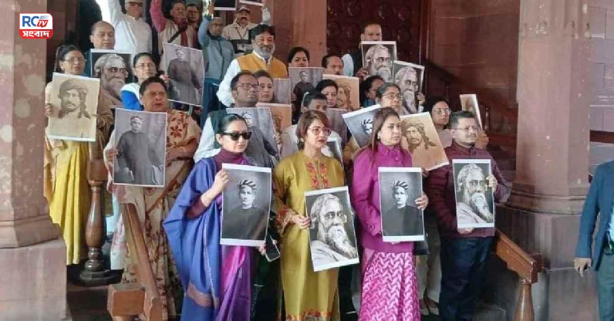 মঙ্গলবারও সেন্ট্রাল হলের বাইরে বঙ্কিমচন্দ্র ও রবীন্দ্রনাথের ছবি (Photos) হাতে মৌন বিক্ষোভে অংশ নেন তৃণমূল সাংসদরা। জয়নগরের প্রতিমা মণ্ডল জানান, “এই সম্বোধন শুধু বঙ্কিমচন্দ্রকে নয়, গোটা বাংলাকে অপমান করেছে।” তাঁর দাবি, বাংলার মানুষ এ ধরনের মন্তব্য ক্ষমা করবে না।